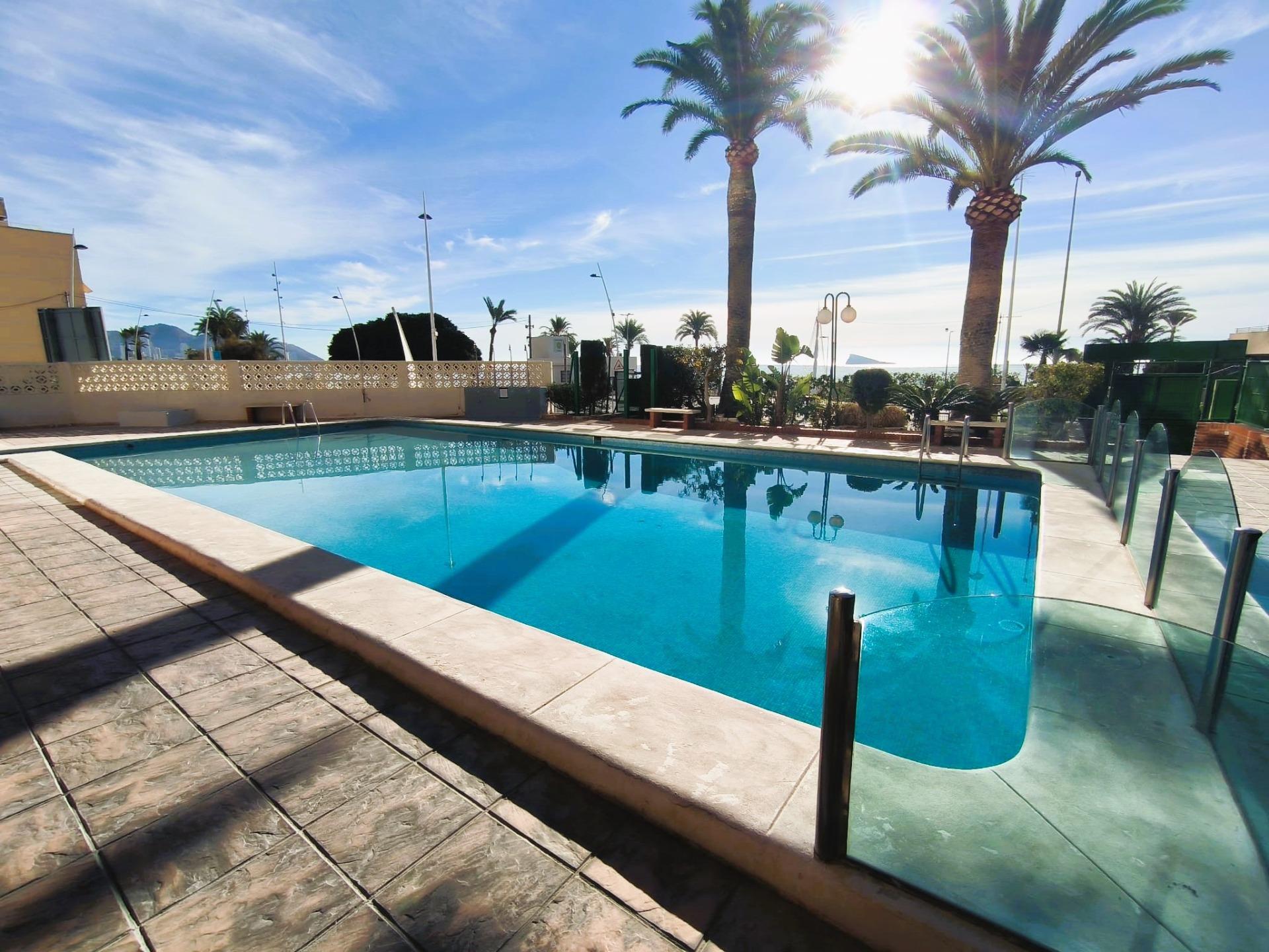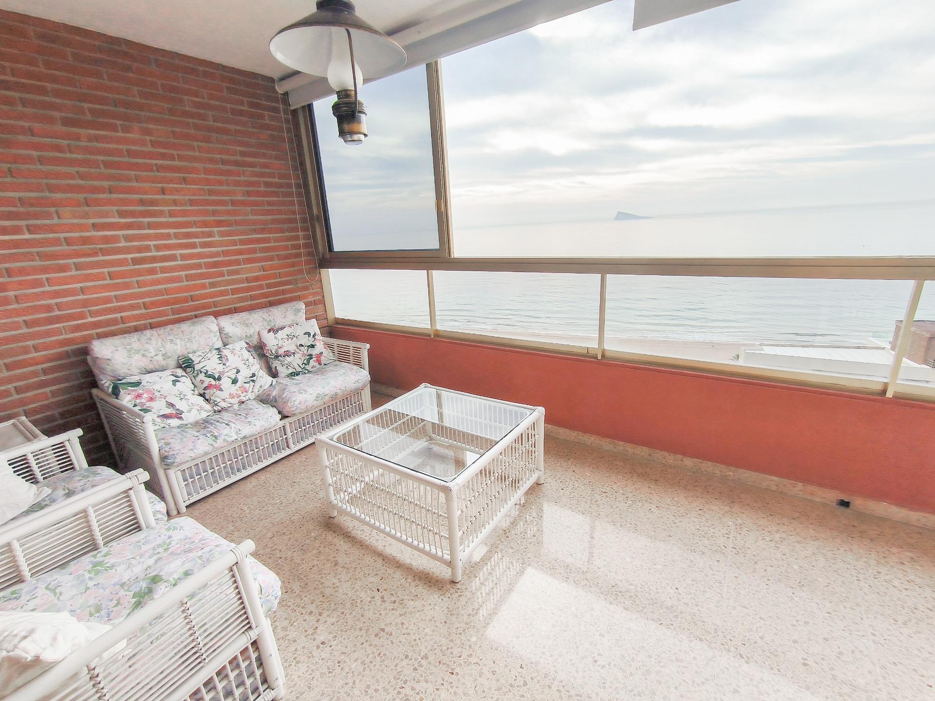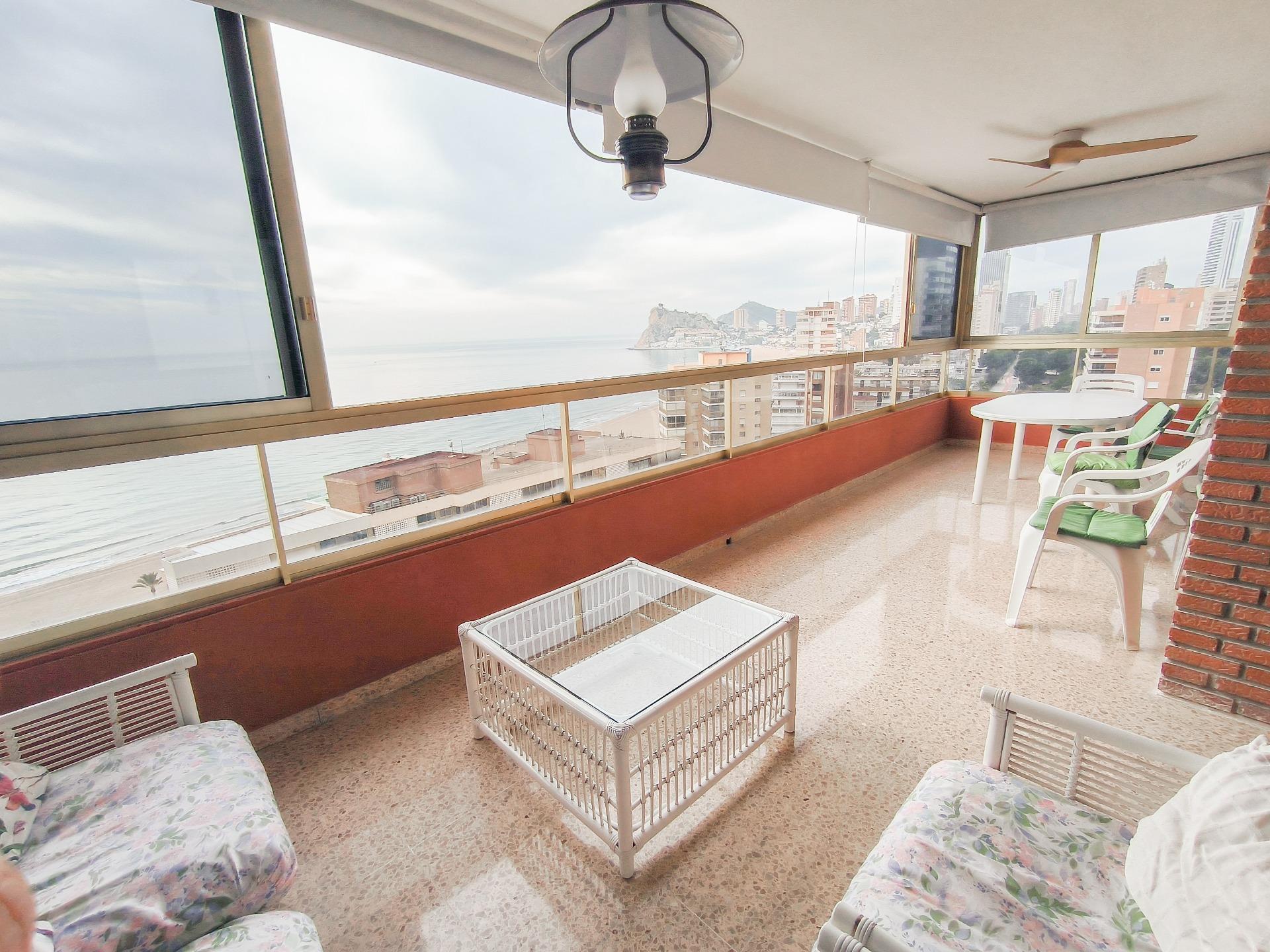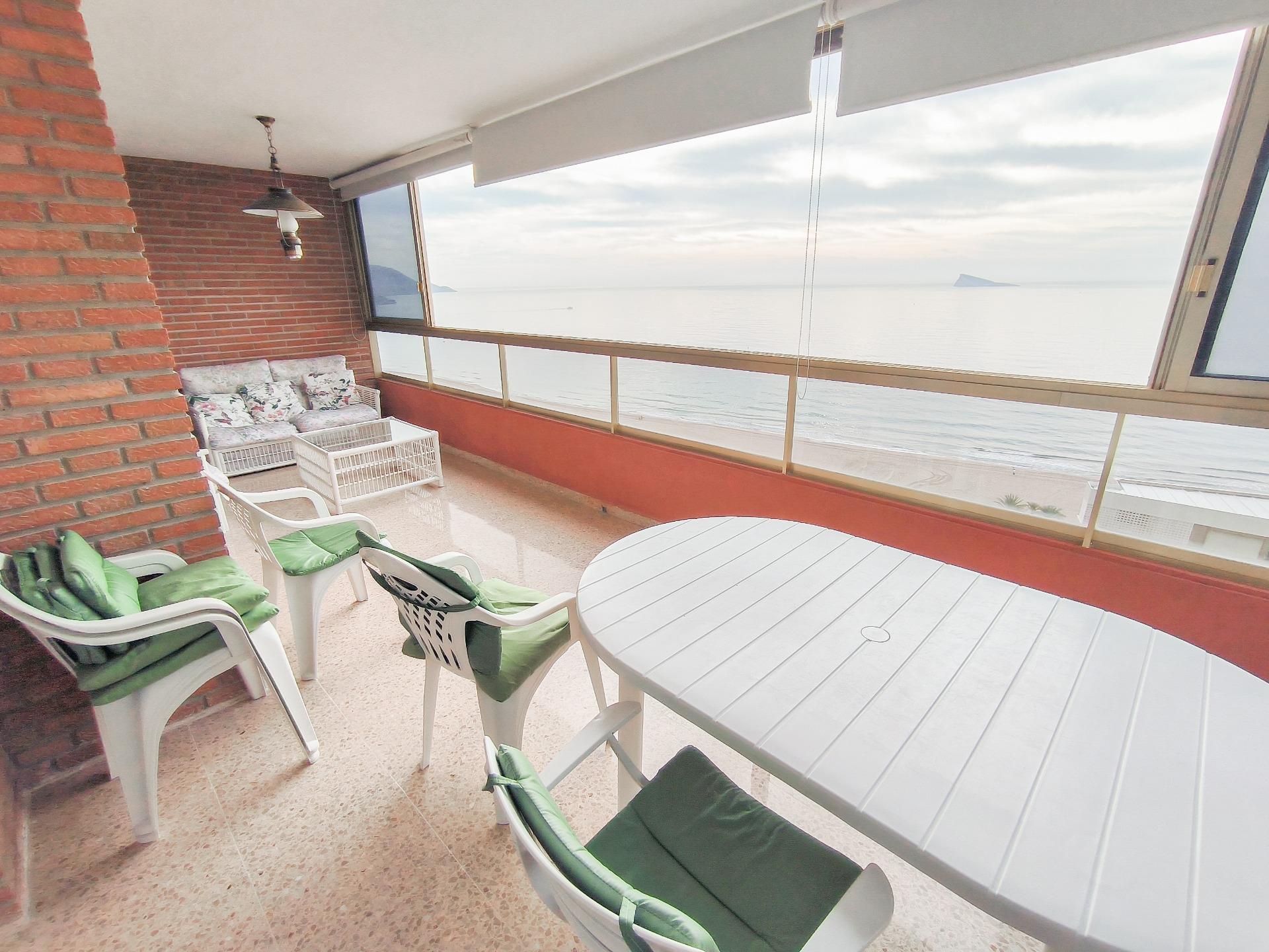 Se alquila amplio piso con vistas de ensueño en primera línea de la Playa de Poniente de Benidorm.~~Disfruta de una vivienda exclusiva de 150 metros cuadrados situada frente al mar, ideal para quienes buscan comodidad, amplitud y una ubicación privilegiada. La propiedad cuenta con 3 dormitorios amplios y luminosos, 2 cuartos de baño completos y un gran salón-comedor con acceso a una magnífica terraza acristalada desde donde podrás contemplar unas vistas espectaculares al Mediterráneo durante todo el año.~~Dispone de cocina independiente totalmente equipada, práctica galería anexa y aire acondicionado, garantizando confort en cualquier época del año.~~La urbanización ofrece piscina comunitaria y parking.~~Ubicado a tan solo dos pasos de la playa, en una zona tranquila pero perfectamente comunicada, con todos los servicios a tu alcance: restaurantes, cafeterías, supermercado, farmacia, estanco, parada de autobús y mucho más.~~Ideal para estancias vacacionales cómodas y relajadas en una de las mejores zonas de Benidorm.~~Alquiler de temporada con estancia mínima de 15 días.~~Para más información sobre el precio y las disponibilidades, contacte con nosotros y le informaremos.~