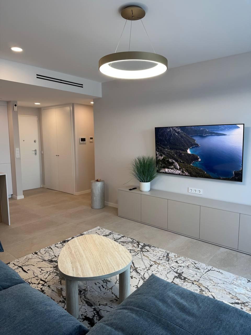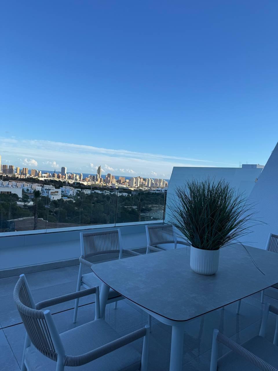 Inmobiliaria LES DUNES ofrece este amplio piso de recién construcción, Seascape Blue, en la moderna zona de Finestrat. ~~Cuenta con 2 dormitorios dobles, 2 modernos cuartos de baño, amplio salón-comedor unido con la cocina tipo americana y con acceso a un enorme balcón con unas vistas espectaculares al mar. Además cuenta con una plaza de parking numerada para mayor comodidad. Urbanización con espectacular piscina comunitaria.~~Está ubicado en Finestrat, en un entorno moderno muy cerca del Centro Comercial La Marina y a unos 4 kilómetros de las playas de Poniente, Benidorm y de la Cala de Finestrat. ~~Precio sin muebles: 460.000.-€~Precio con muebles: 485.000.-€~