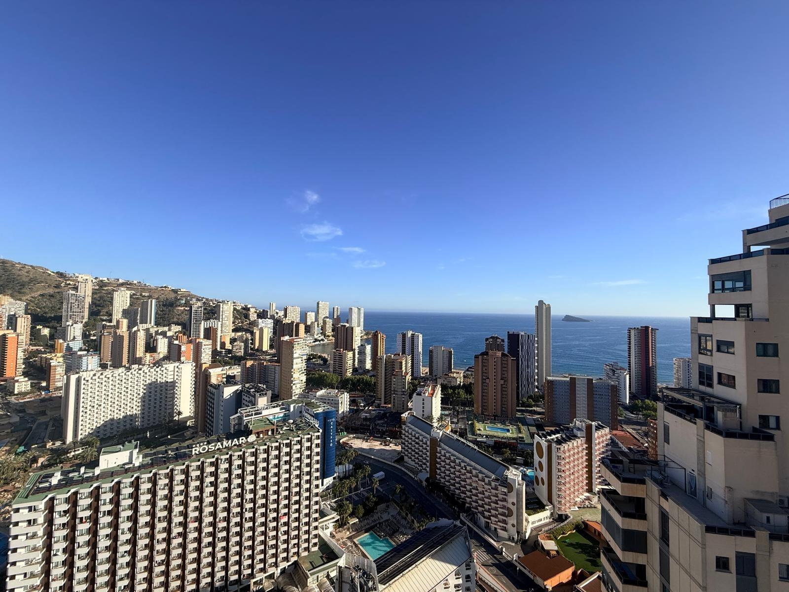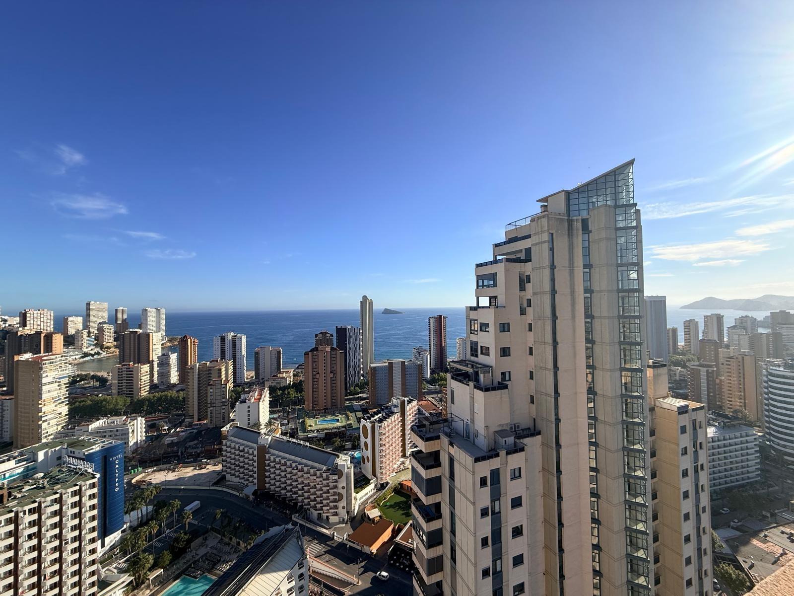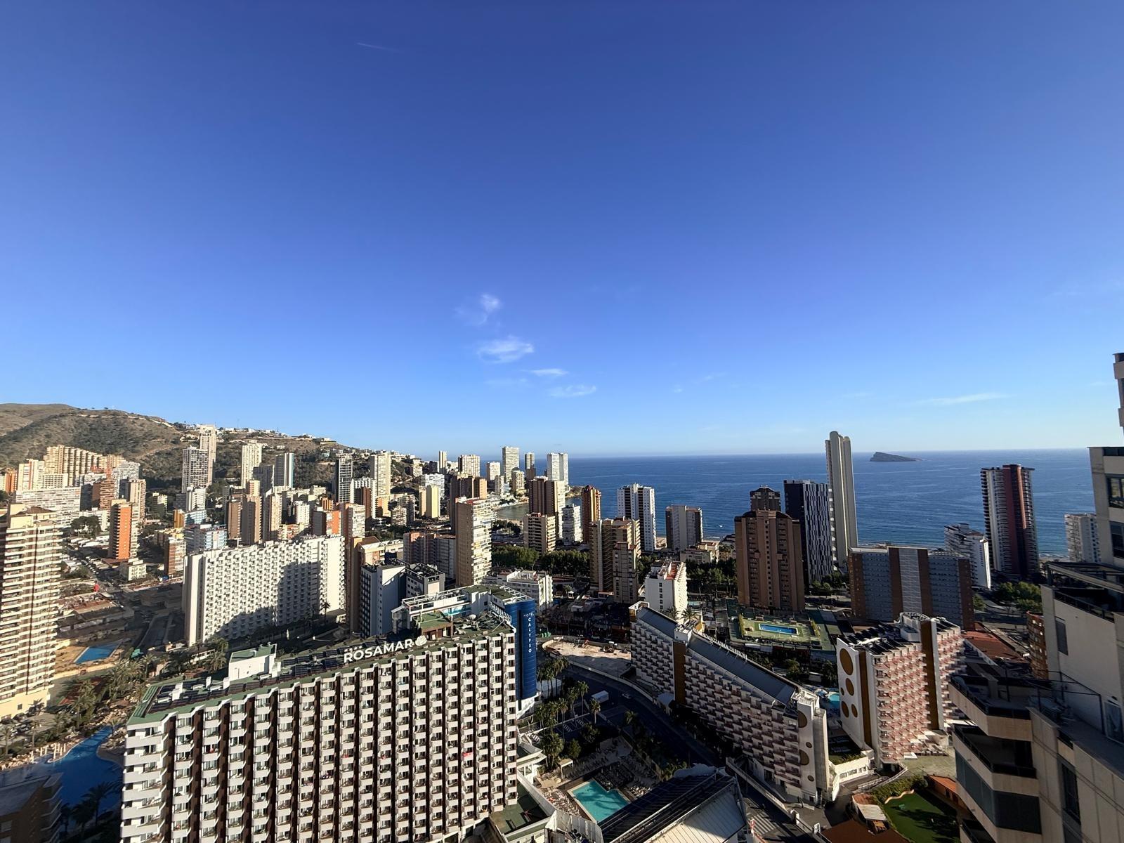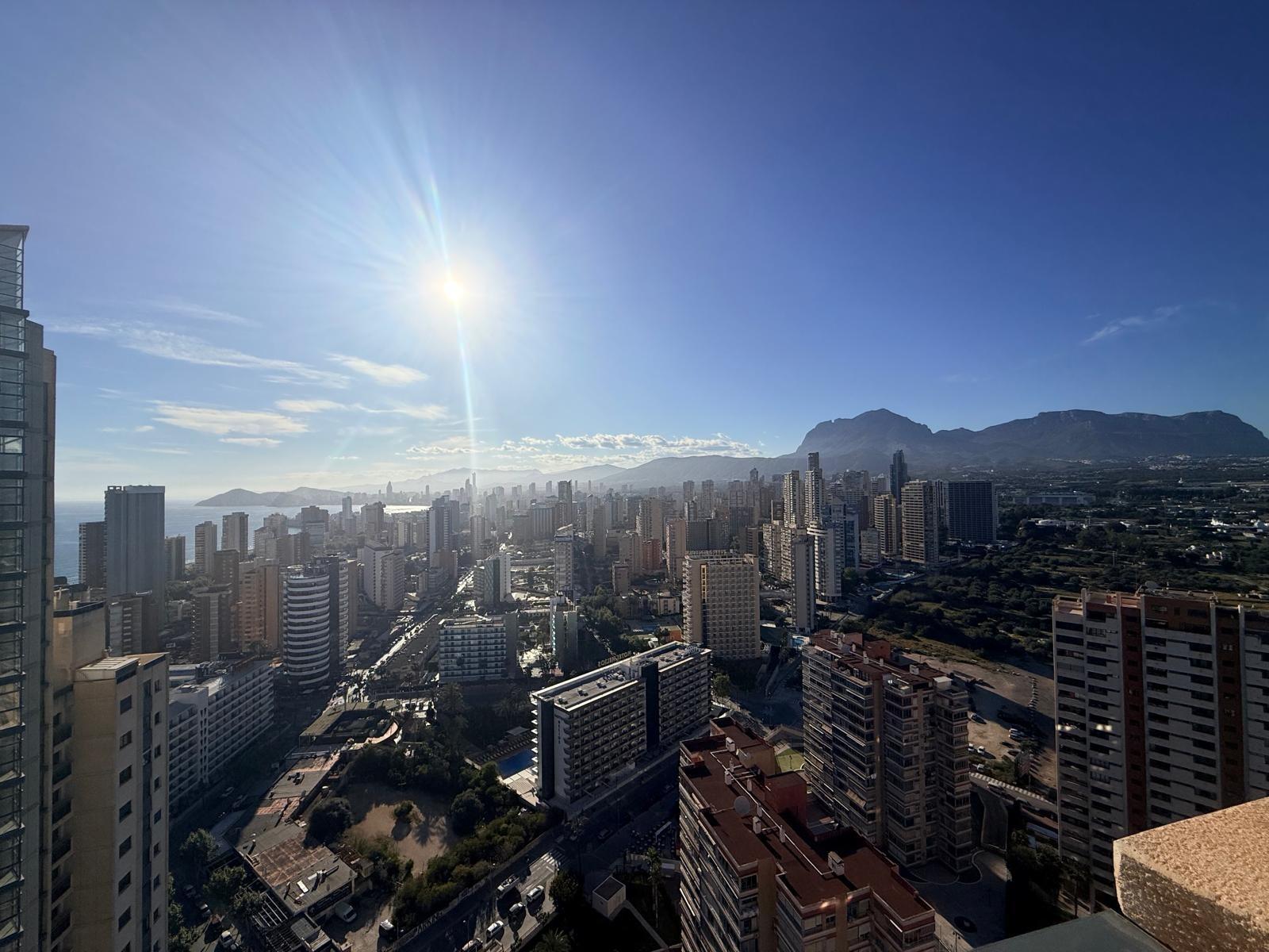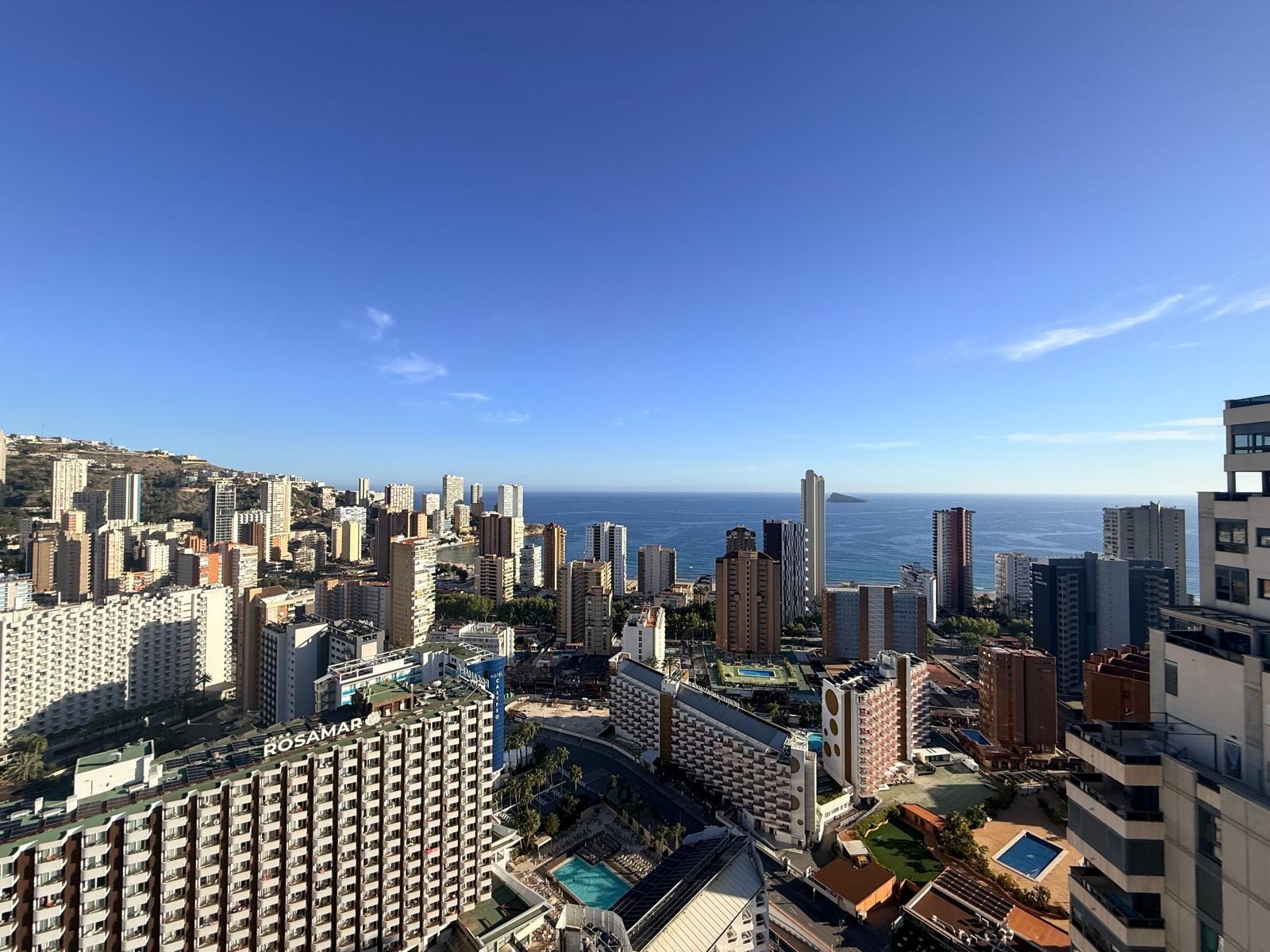Inmobiliaria LES DUNES ofrece en exclusiva este maravilloso ático en la moderna urbanización Gemelos 26, en el Rincón LLano a unos 400 metros de la Playa de Levante.~El piso ofrece unas dimensiones superiores a las de el resto de las~viviendas. Tiene 2 dormitorios, uno de ellos con una terraza con vistas al mar y baño en suite, otro cuarto de baño adicional, amplio salón-comedor con acceso a una terraza de unos 30m2 que ofrece unas vistas espectaculares y panorámicas al mar, montaña y a la ciudad de Benidorm. En la terraza hay un pequeños trastero/despensa.~~La cocina es independiente y ofrece vistas panorámicas igualmente. ~~Además, incluida en el precio viene una plaza de garaje subterránea privada y cabinada, una característica muy~importante en una zona donde el aparcamiento es muy deseado.~La urbanización ultra moderna y completa cuenta con una piscina comunitaria en una zona ajardinada muy bien cuidada, una piscina climatizada interior para poder disfrutar todo el año, zonas de tenis, paddle e~infantiles.~Aproveche esta magnífica ocasión de ser propietario de este fantástico ático.~Venta 550,000.- €~